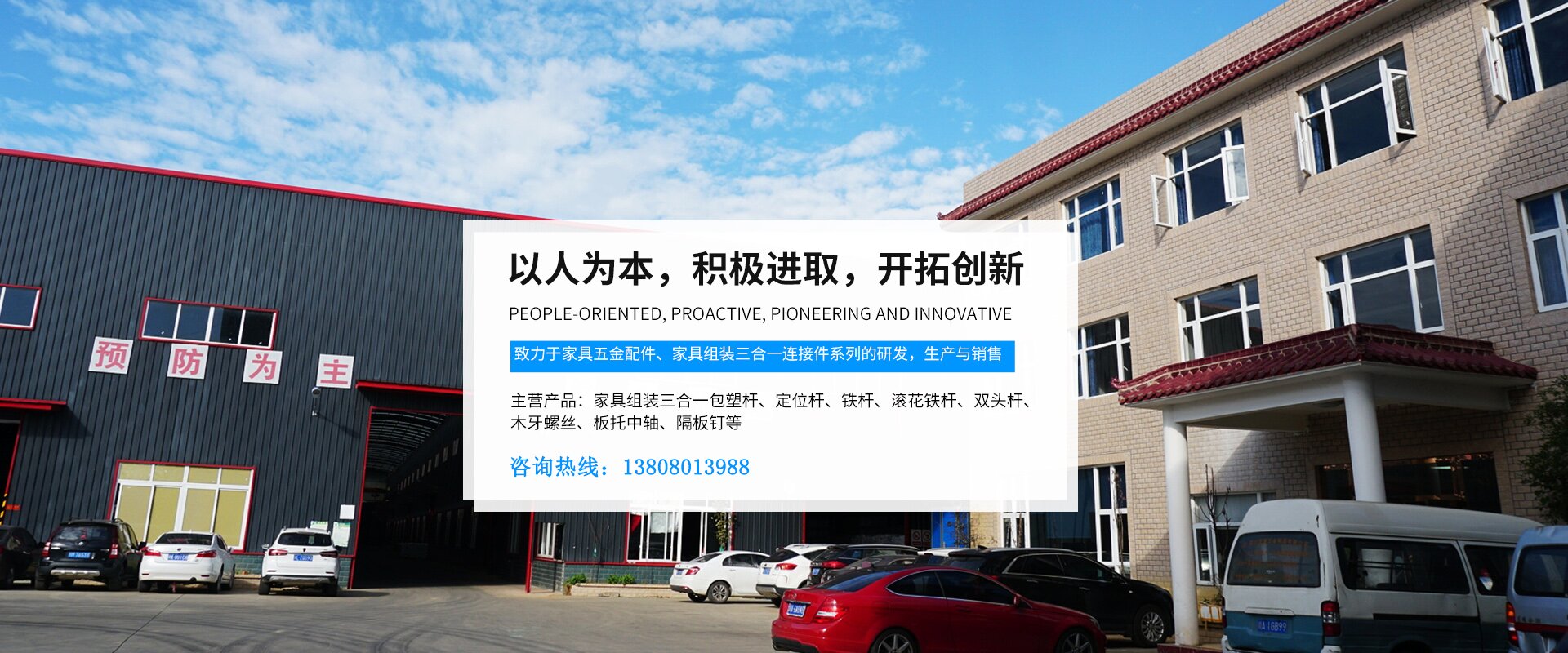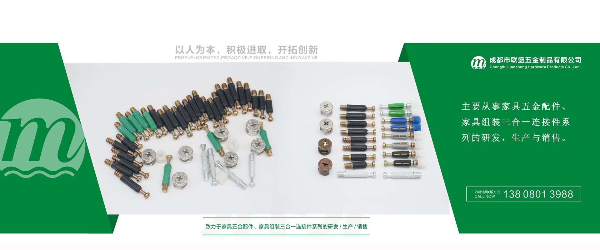 成都市聯(lián)盛五金制品有限公司成立于2012年,現(xiàn)擁有廠(chǎng)房面積16000平方米,主要從事家具五金配件、家具組裝三合一連接件系列的研發(fā),生產(chǎn)與銷(xiāo)售。公司目前主營(yíng)產(chǎn)品:家具組裝三合一包塑桿、定位桿、鐵桿、滾花鐵桿、雙頭桿、木牙螺絲、板托中軸、隔板釘?shù)取?br>